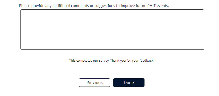 Please provide any additional comments or suggestions to improve future PHIT events.