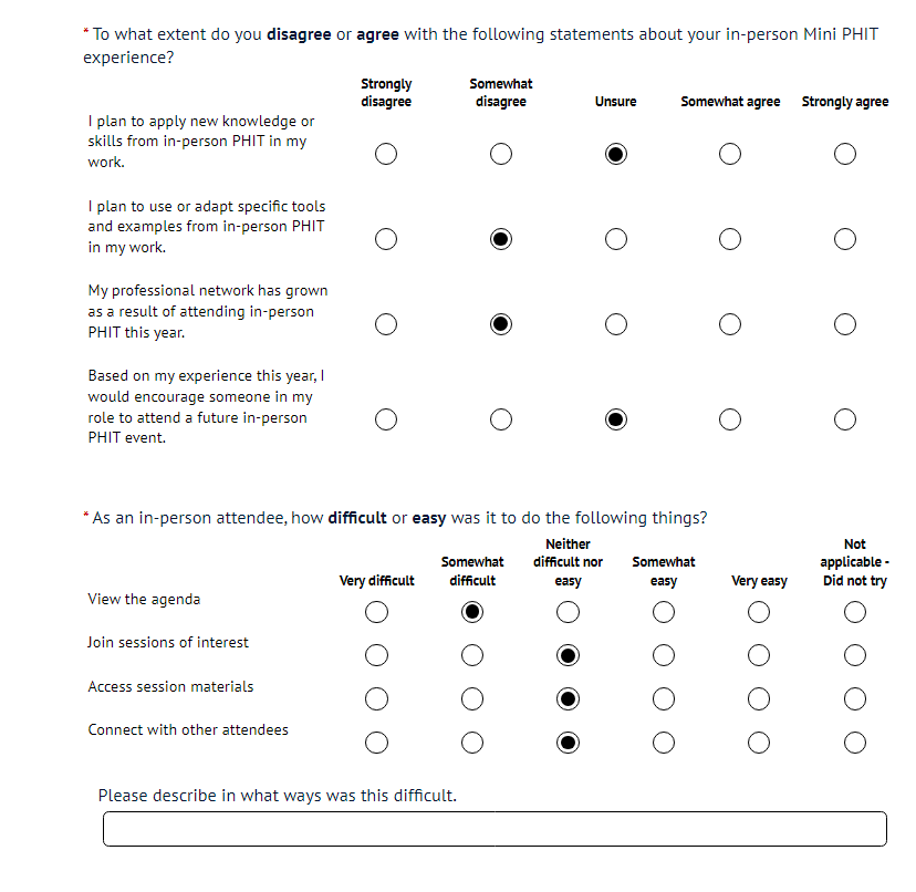 We would like to know more about your overall experience during the in-person Mini PHIT on May 20 - 21, 2024.