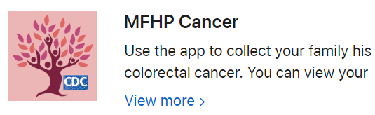 Thank you for agreeing to be in our study. You will be asked to give feedback on the Center for Disease Control (CDC) Division of Cancer Prevention and Control (DCPC) My Family Health Portrait (MFHP): Cancer app. MFHP: Cancer is a free app that you can use to collect your family health history find out if you are at increased risk for breast, ovarian and/or colorectal cancer based on your health history and risk factors, and learn about next steps to take based on your results. We want to see how well the app works for users to collect their personal and family health history, and learn their personal risk of cancer. We also want to know how clear and understandable the information in the app is and learn what works well in the app, and what we can do better.