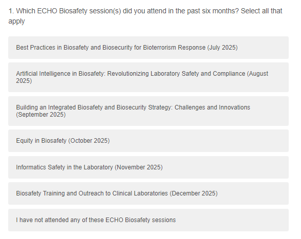 Survey 3: CDC Biosafety ECHO Follow-up Surveys