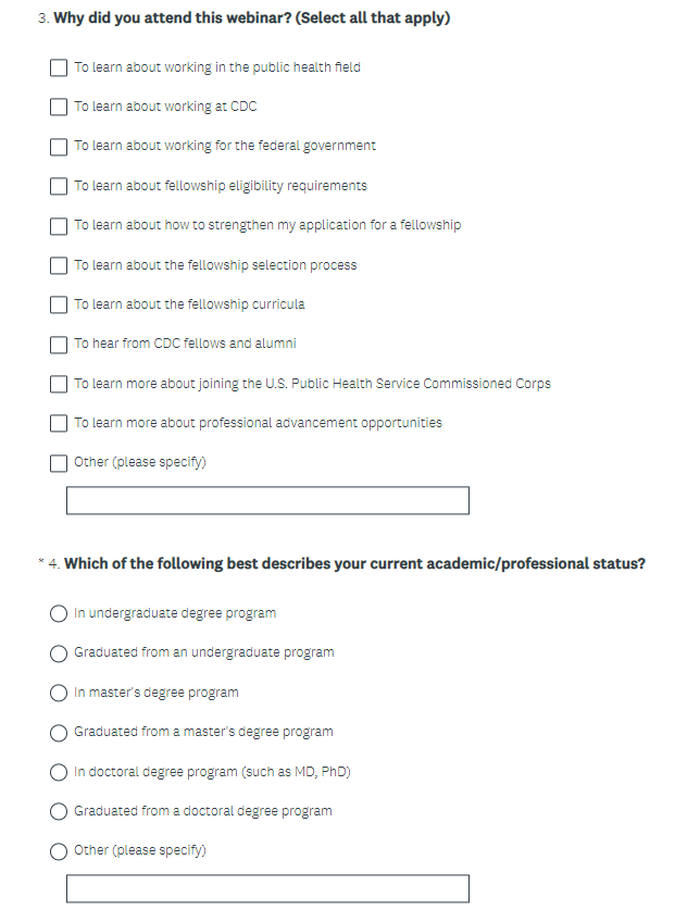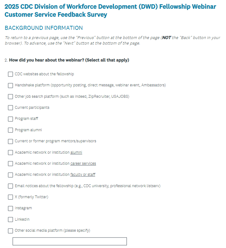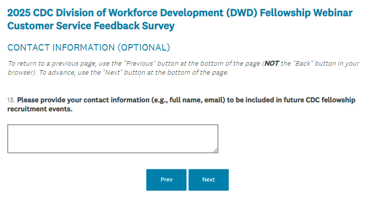 2025 CDC Division of Workforce Development (DWD) Fellowship Webinar Customer Service Feedback Survey (screenshots)