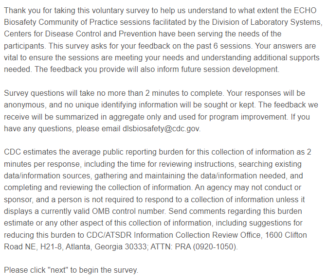 Survey 3: CDC Biosafety ECHO Follow-up Surveys