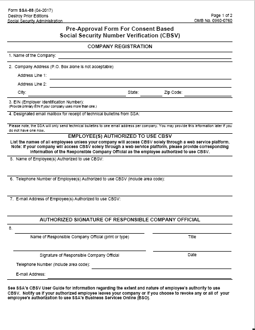 Attachment B – Form SSA-88 Pre-Approval Form for CBSV 28