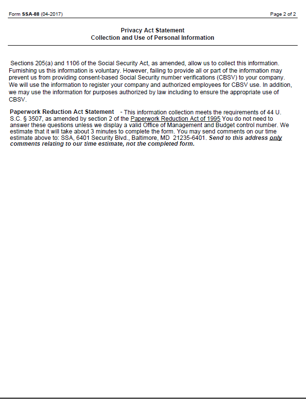Authorized User – An employee of the Requesting Party whom the Requesting Party has authorized to submit SSN verification requests and has successfully registered to use the Consent Based Social Security Number Verification (CBSV) system.