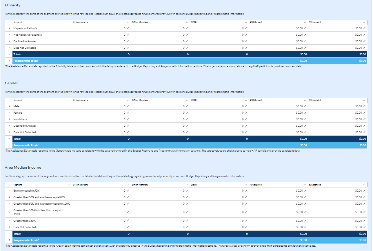 HAF participants are required to submit quarterly reports with current performance and financial information, including background information about applications approved, applications received, Homeowners assisted, and financial information with details about obligations and expenditures.