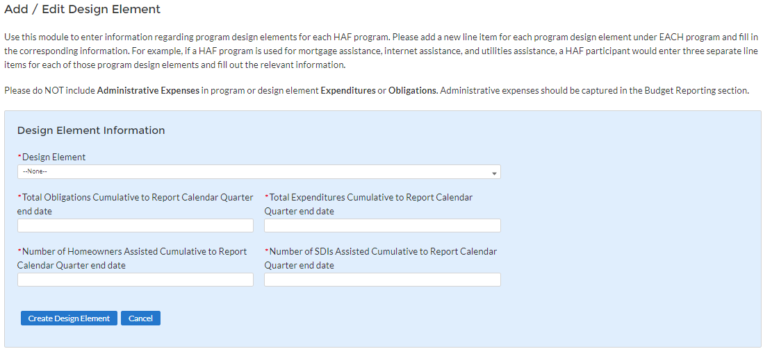 HAF participants are required to submit quarterly reports with current performance and financial information, including background information about applications approved, applications received, Homeowners assisted, and financial information with details about obligations and expenditures.