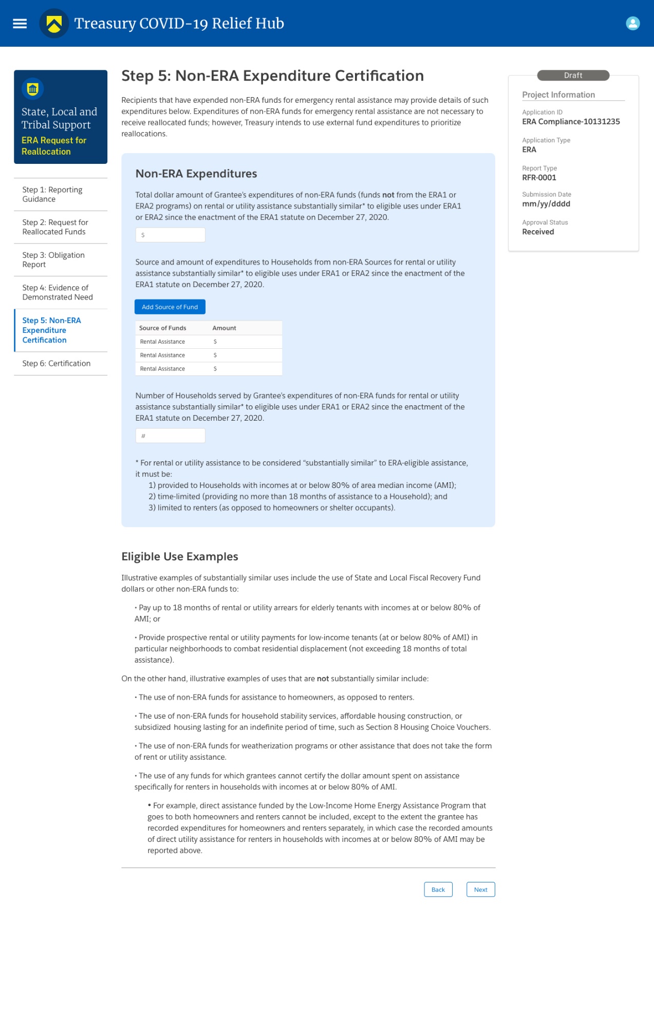 ERA2 Round2 Portal - Non-ERA Expenditures Report - Screenshot