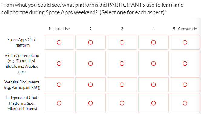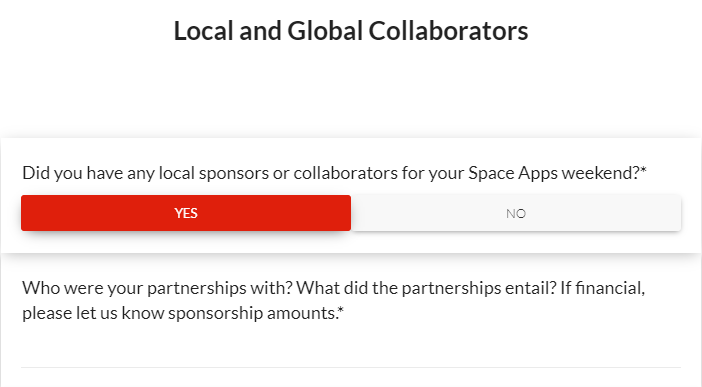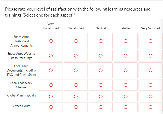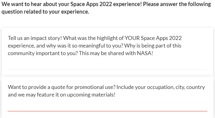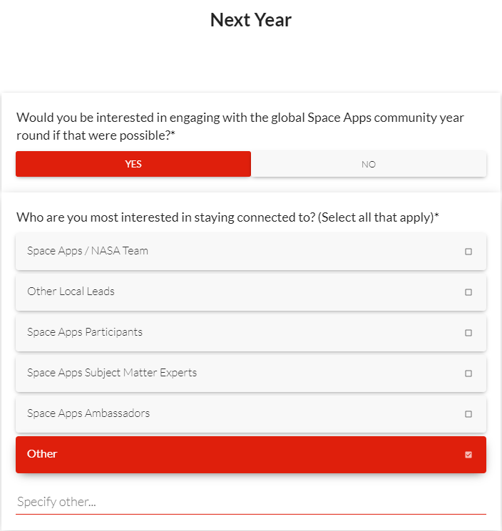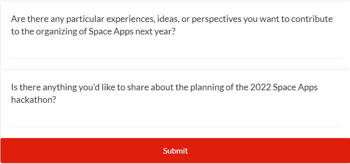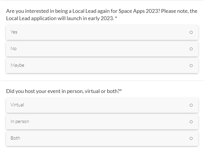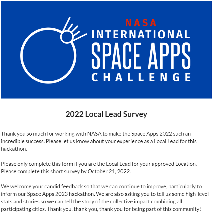 2022 Space Apps Local Lead Survey - Screenshots