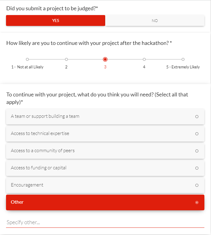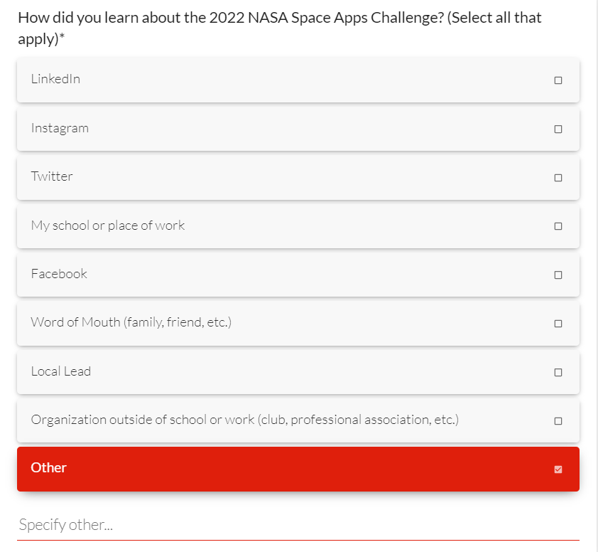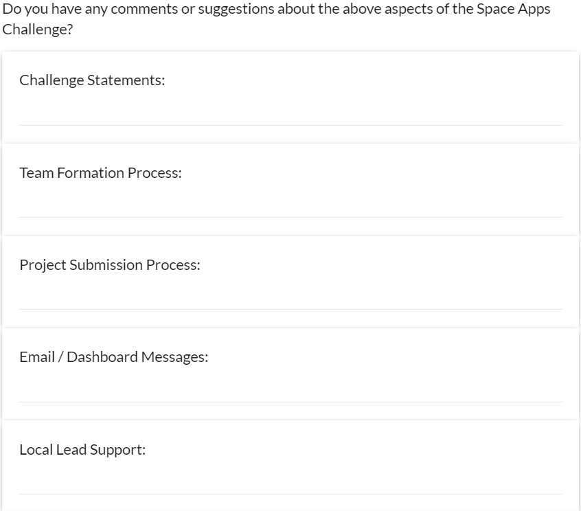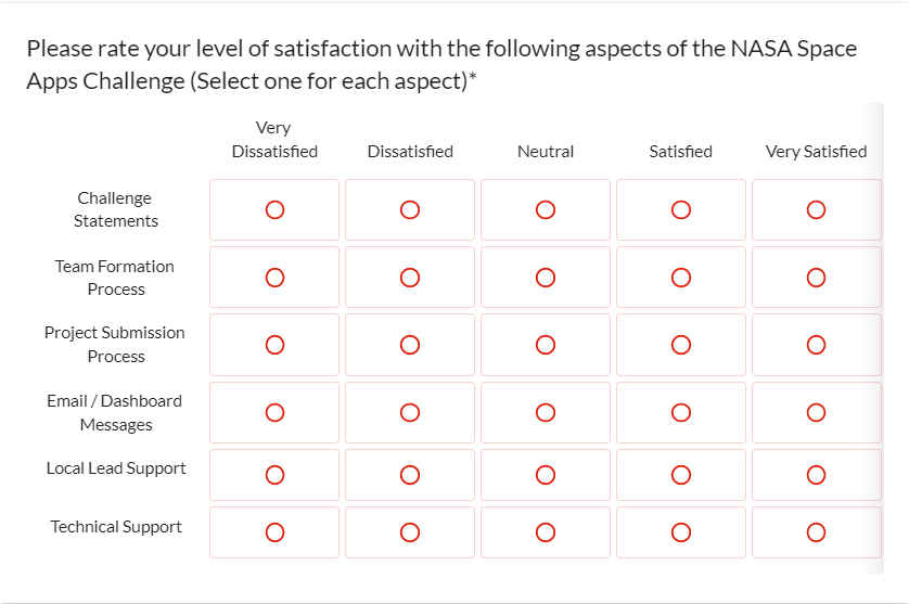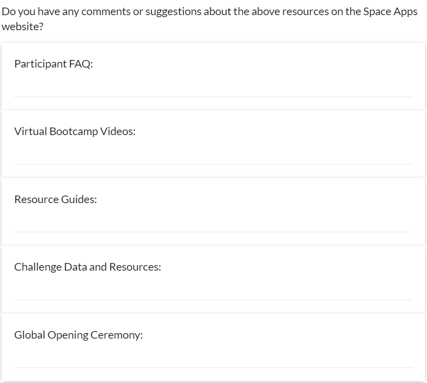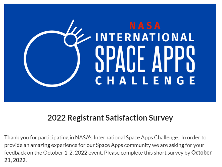 2022 Space Apps Registrant Satisfaction Survey screenshots