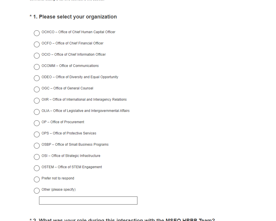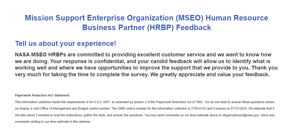 MSEO HRBP Feedback Survey Screenshots