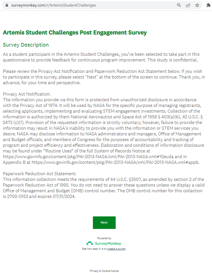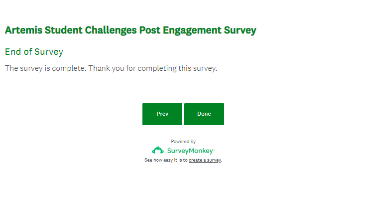 Artemis Student Challenges Post Engagement Survey SCREEN SHOTS (4-20-23)