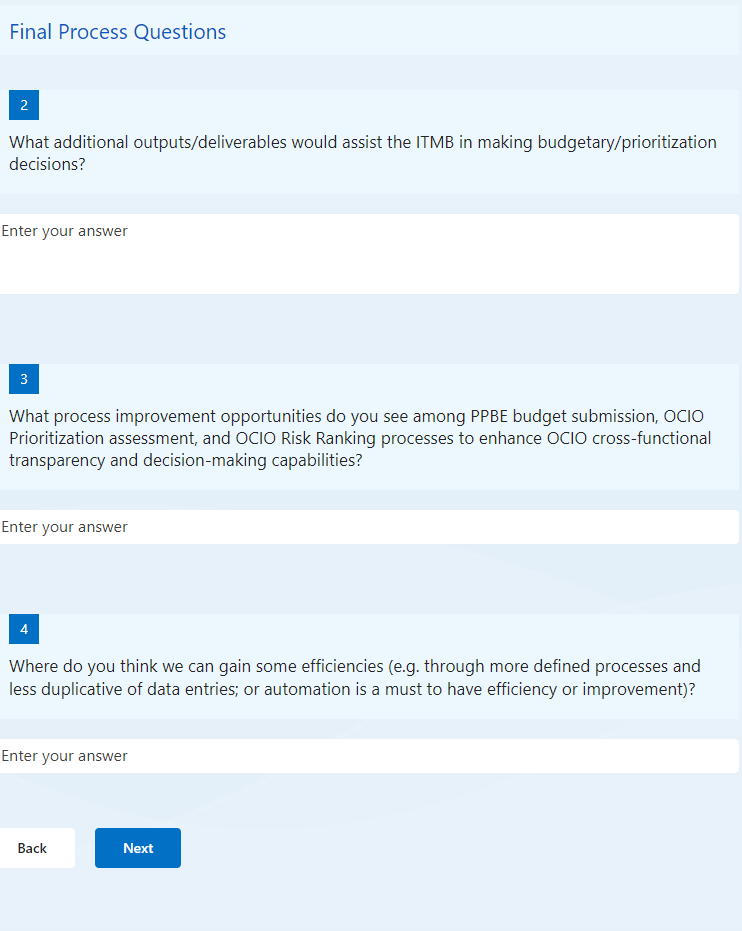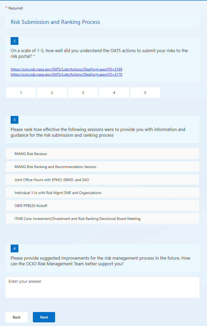 Please provide suggested improvements for the risk management process in the future. How can the OCIO Risk Management Team better support you?