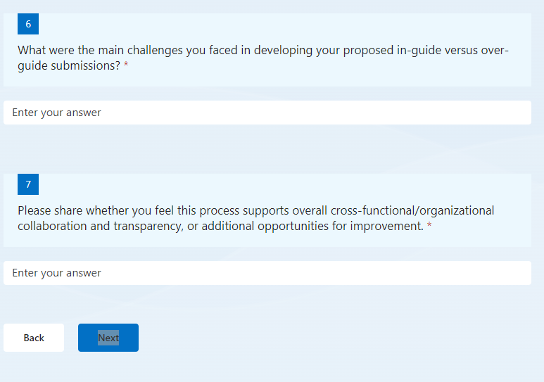 Please share whether you feel this process supports overall cross-functional/organizational collaboration and transparency, or additional opportunities for improvement.