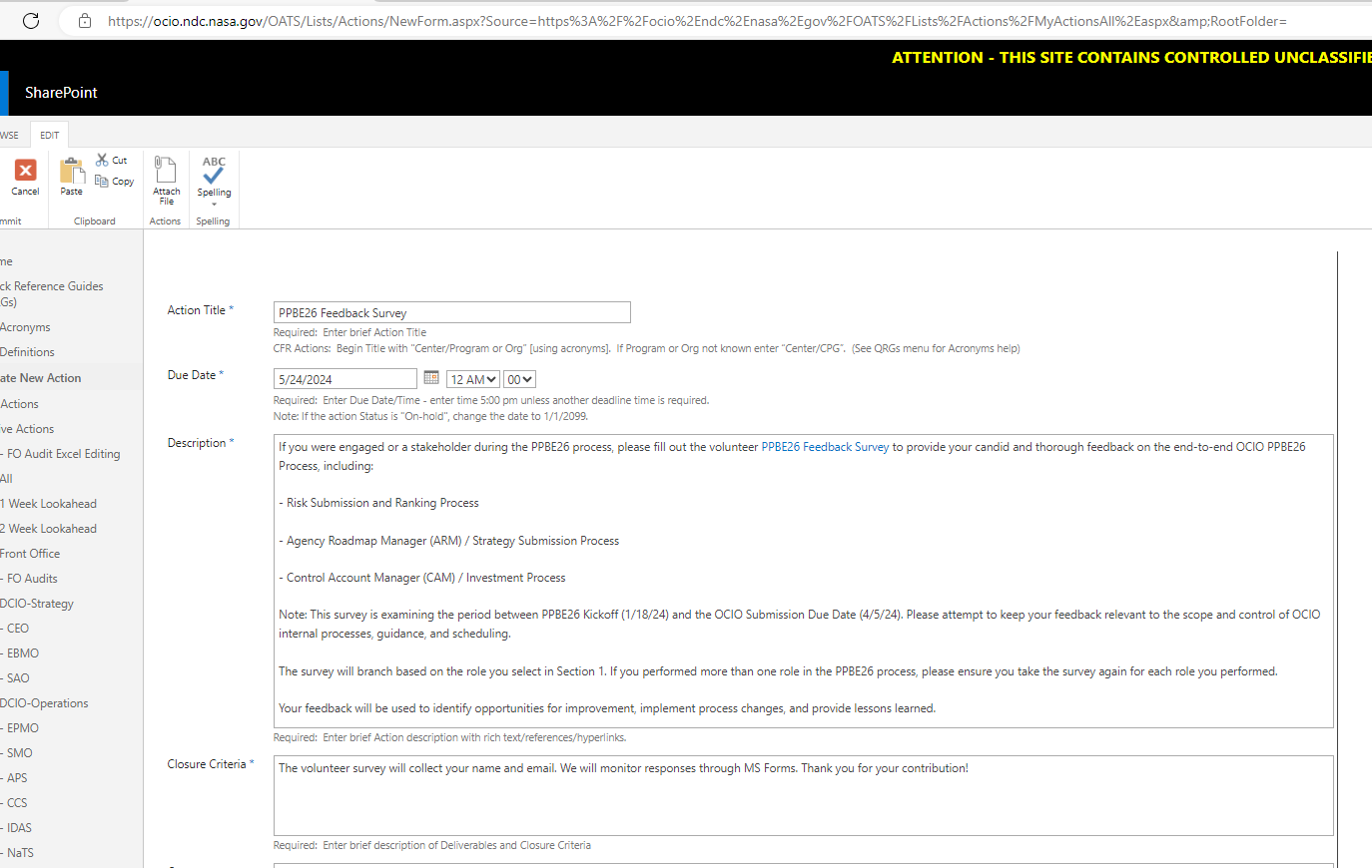 We will submit using the OCIO Action Tracking System (OATS) to announce this survey.