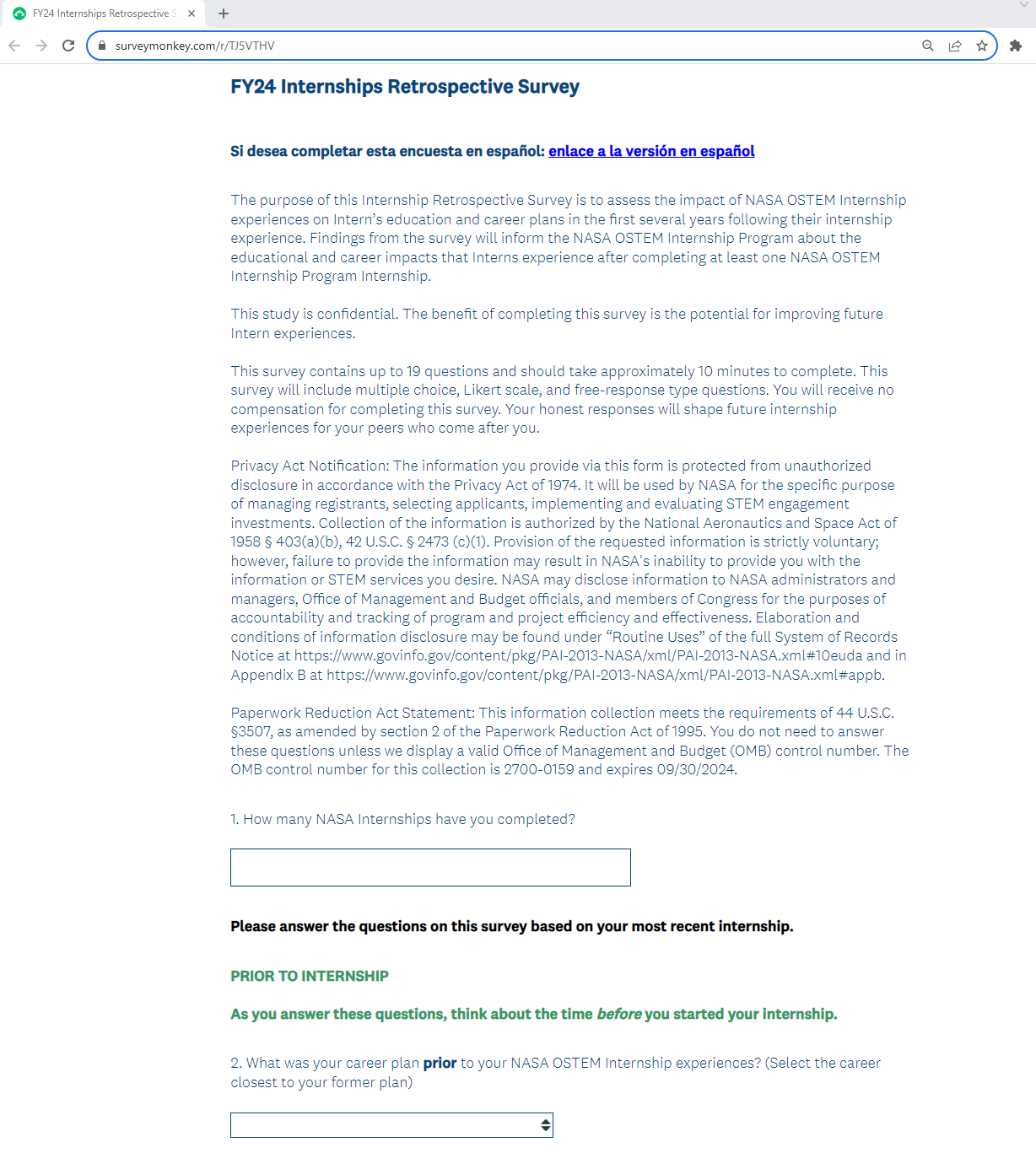 Internship Retrospective Survey Screenshots (12-8-23)
