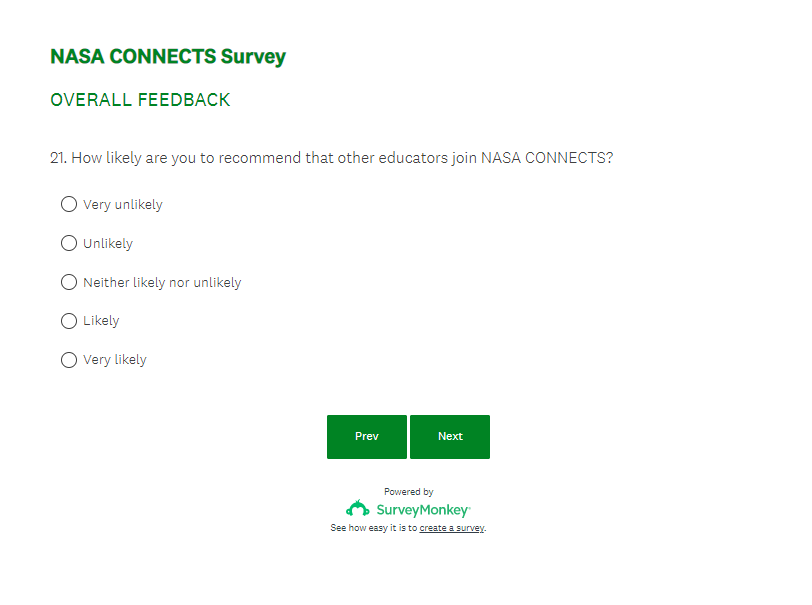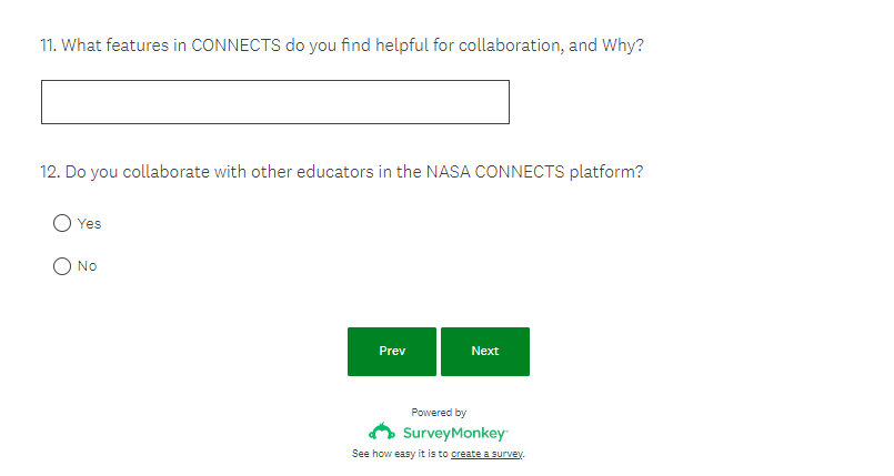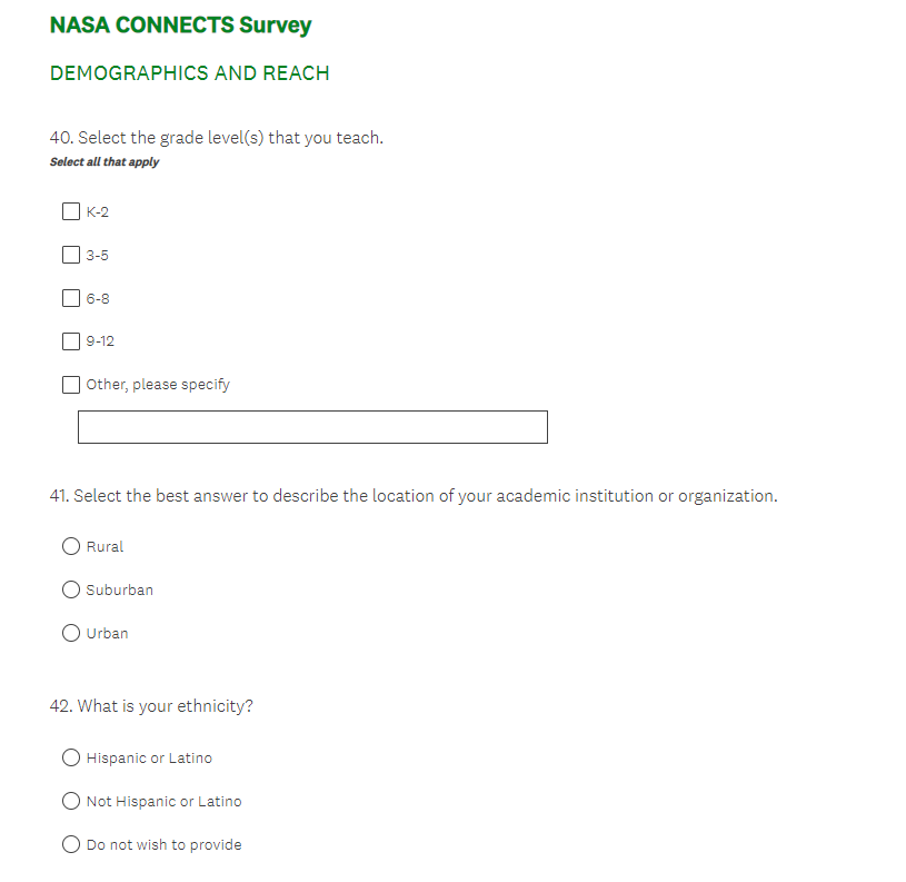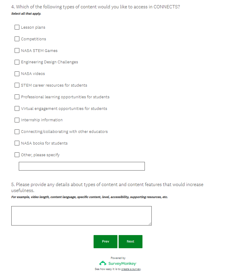 NASA CONNECTS Evaluation Survey Screenshots (4-7-23)
