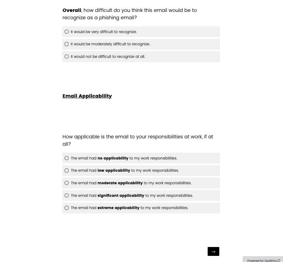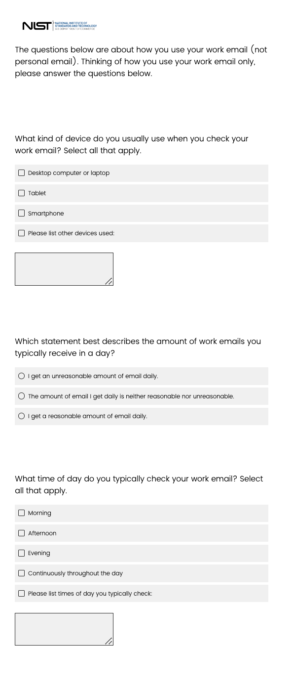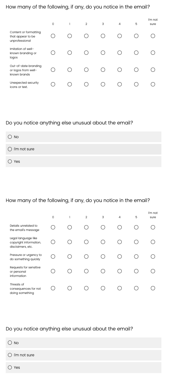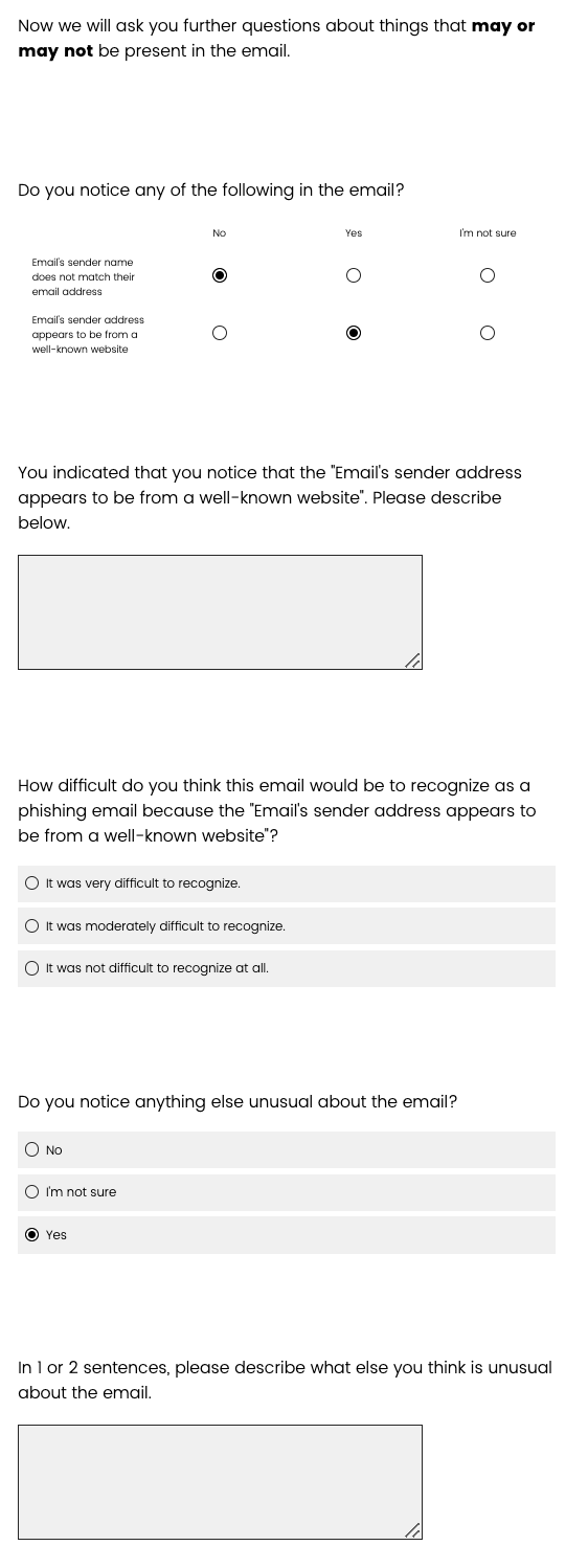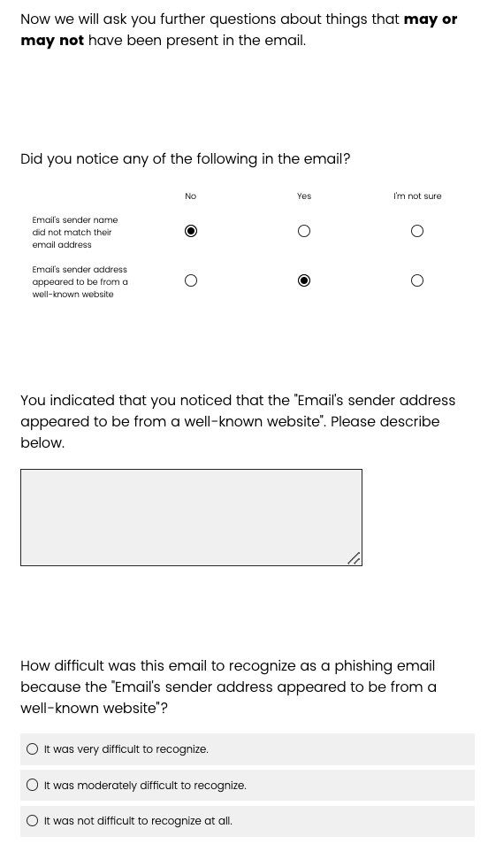 the email” then they are shown these questions. If they do not