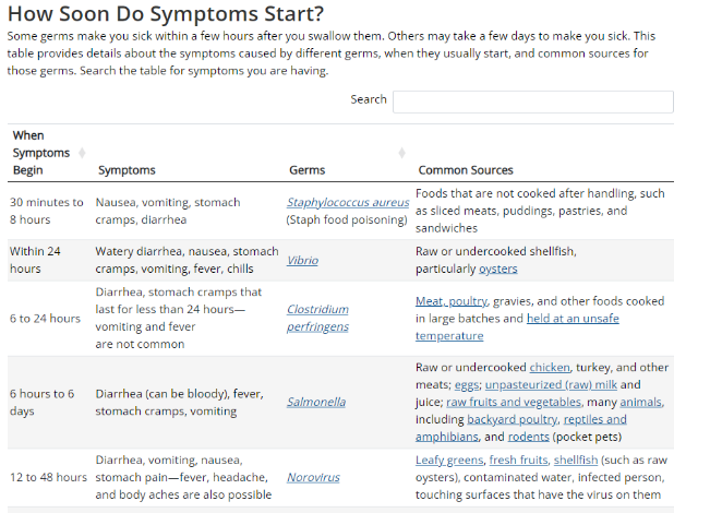 E. coli/Salmonella/Listeria symptoms module in outbreak postings