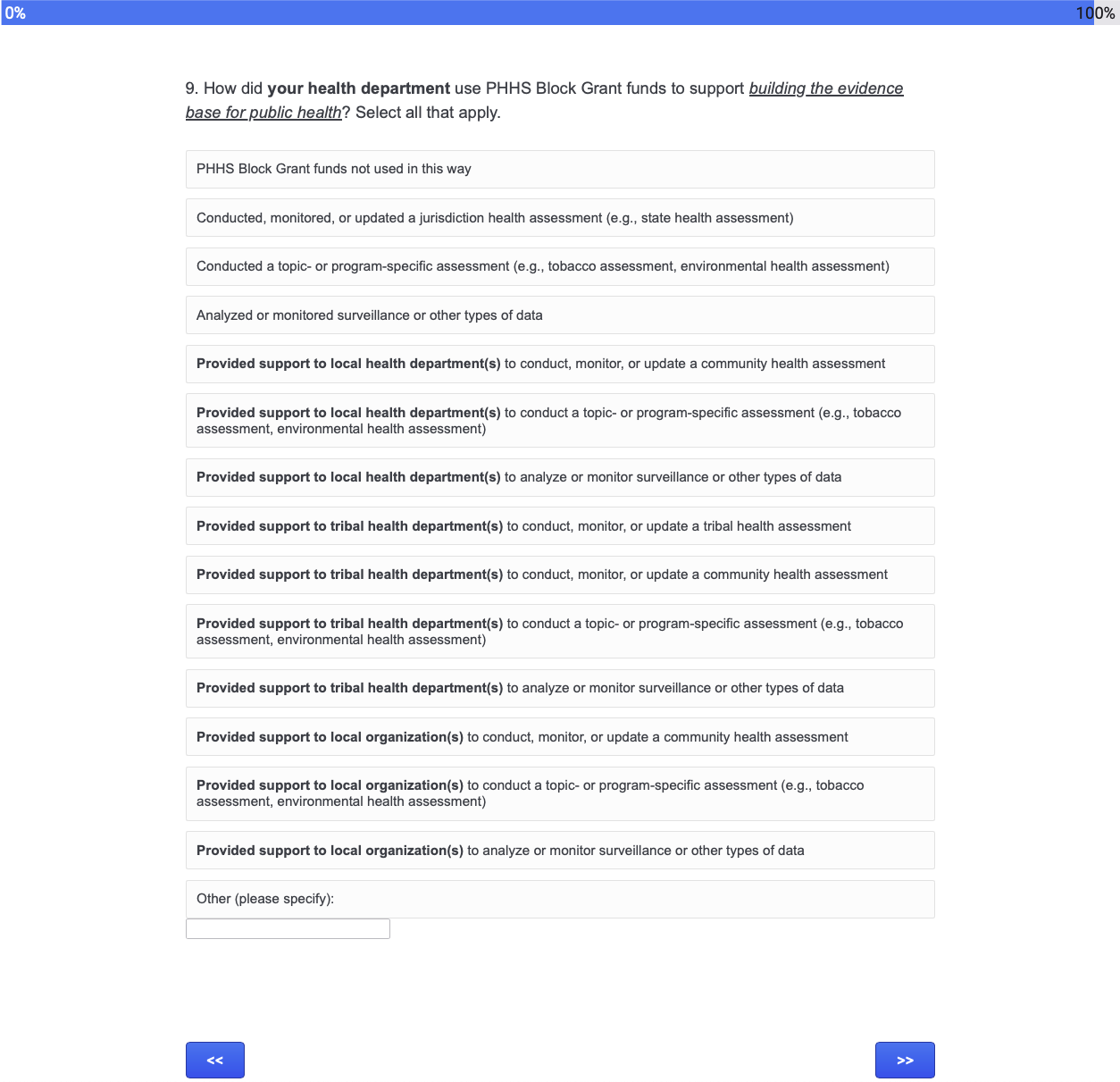 Screen 50: Note: the numerical of value of ‘8,’ shown below, is a piped-text entry based on the value input into Q8e.1. The rows displayed are equal to the items selected in 8e.2