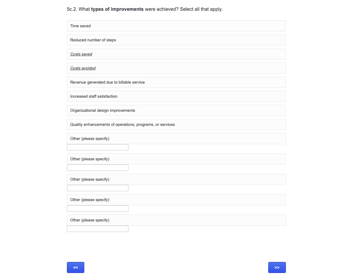 Screen 44: Note: the numerical of value of ‘8,’ shown below, is a piped-text entry based on the value input into Q8c.1. The rows displayed are equal to the items selected in 8c.2
