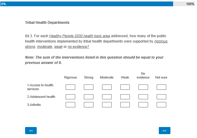 Screen 47: Note: the numerical of value of ‘8,’ shown below, is a piped-text entry based on the value input into Q8d.1. The rows displayed are equal to the items selected in 8d.2
