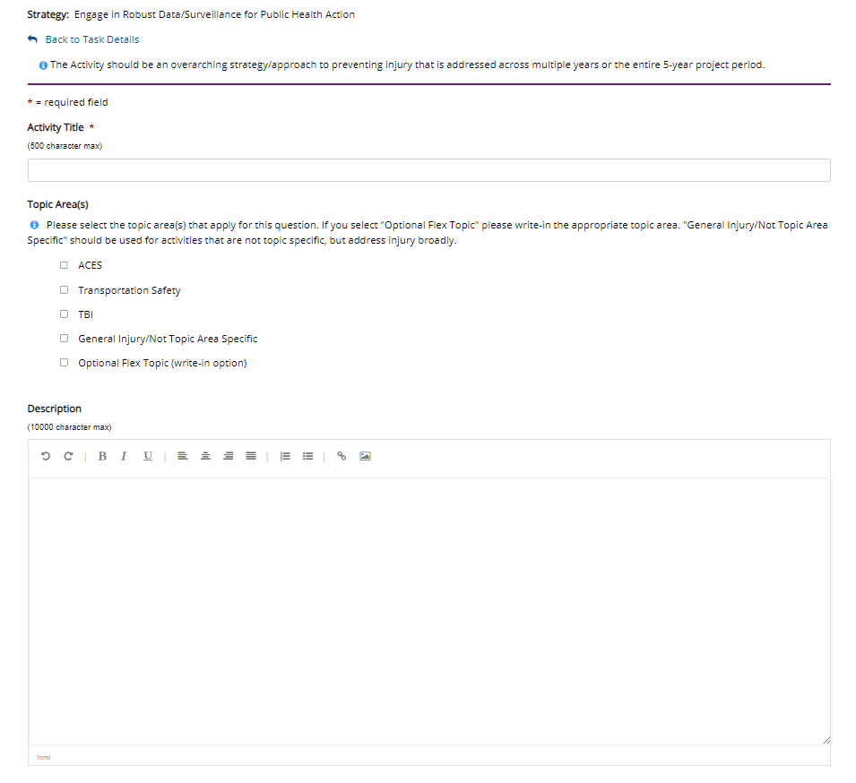 Fields on page 2-7 will be completed for all 3 primary strategies and the Enhanced component strategy (Activity Overview, Indicators, Sub-Activities):