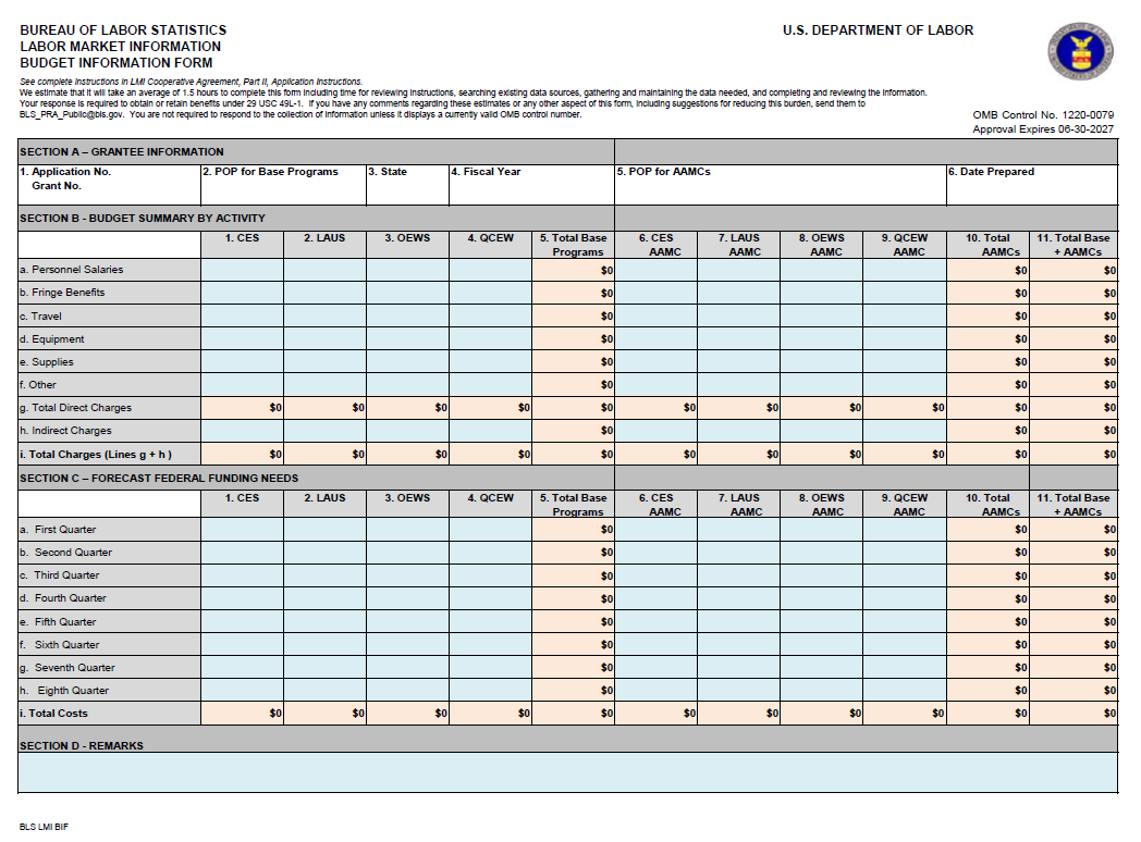 The LMI Budget Information Form (BIF) is a state agency's obligation plan for the CA. The BIF establishes the level of planned obligations during a program year and states should strive to make actual obligations match planned levels. If, however, financial reports reveal a state is under-spent, relative to its total planned obligations, the BLS may deobligate some of the state’s funds. When the planned-to-actual difference of obligations exceeds 5 percent of total planned obligations, and is greater than $10,000, the BLS may unilaterally deobligate up to 90 percent of this difference.