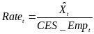 The proposed alternative is consistent with the theoretical relationships, although the mean rates of the imputation values generated by the model are generally higher than the actual reported values of item respondents for some variables. (For example, model hires rates in the expanding group are 1% higher than the reported.) Interestingly, the Job Openings rate for contracting establishments is the highest. This could be an indication that firms that have experienced quits or layoffs may be in need of workers and therefore report high levels of job openings. In the proposed model, the distribution lengths (ψ) are derived using an arbitrarily chosen 90% confidence interval of the measure of rate dispersion within the cell (i.e., ψ= η* σ, where η is a constant of 1.645). The rates generated by the model could empirically be made to equal the historical reported rates by altering the value of η for each dynamic group/variable.
