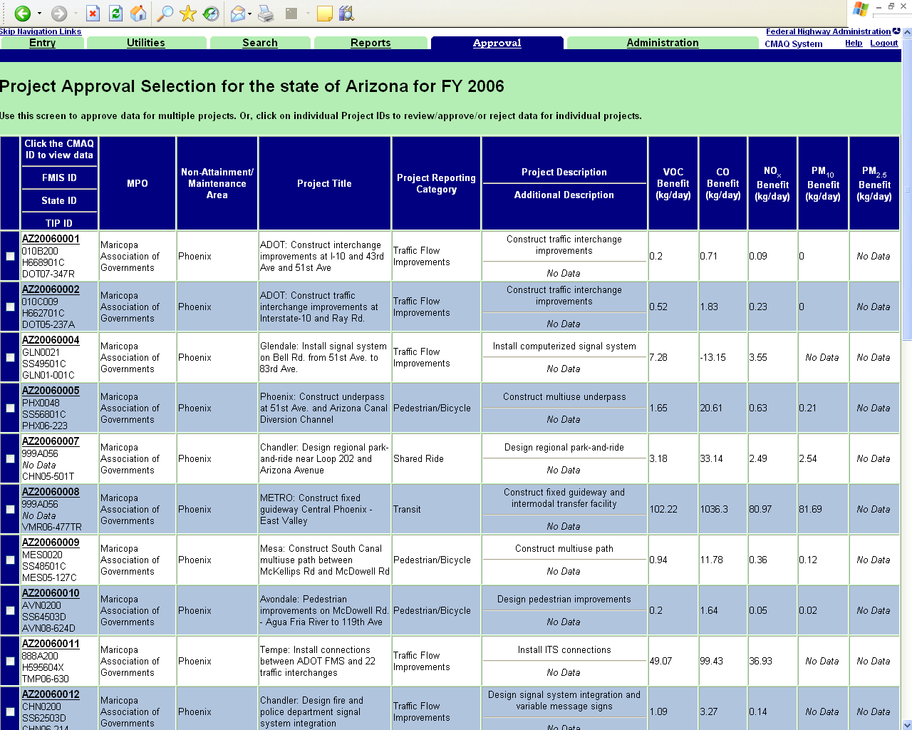 CMAQ Tracking system for OMB review