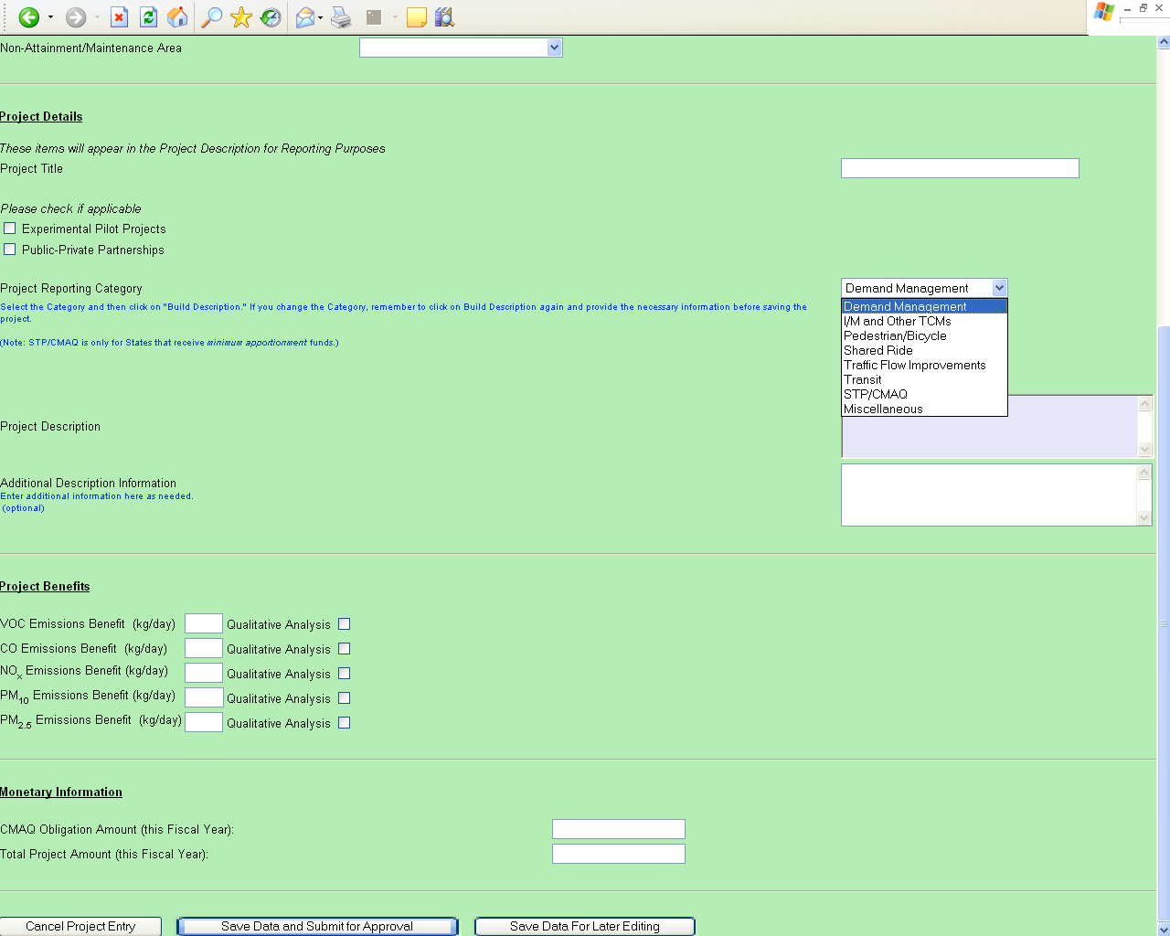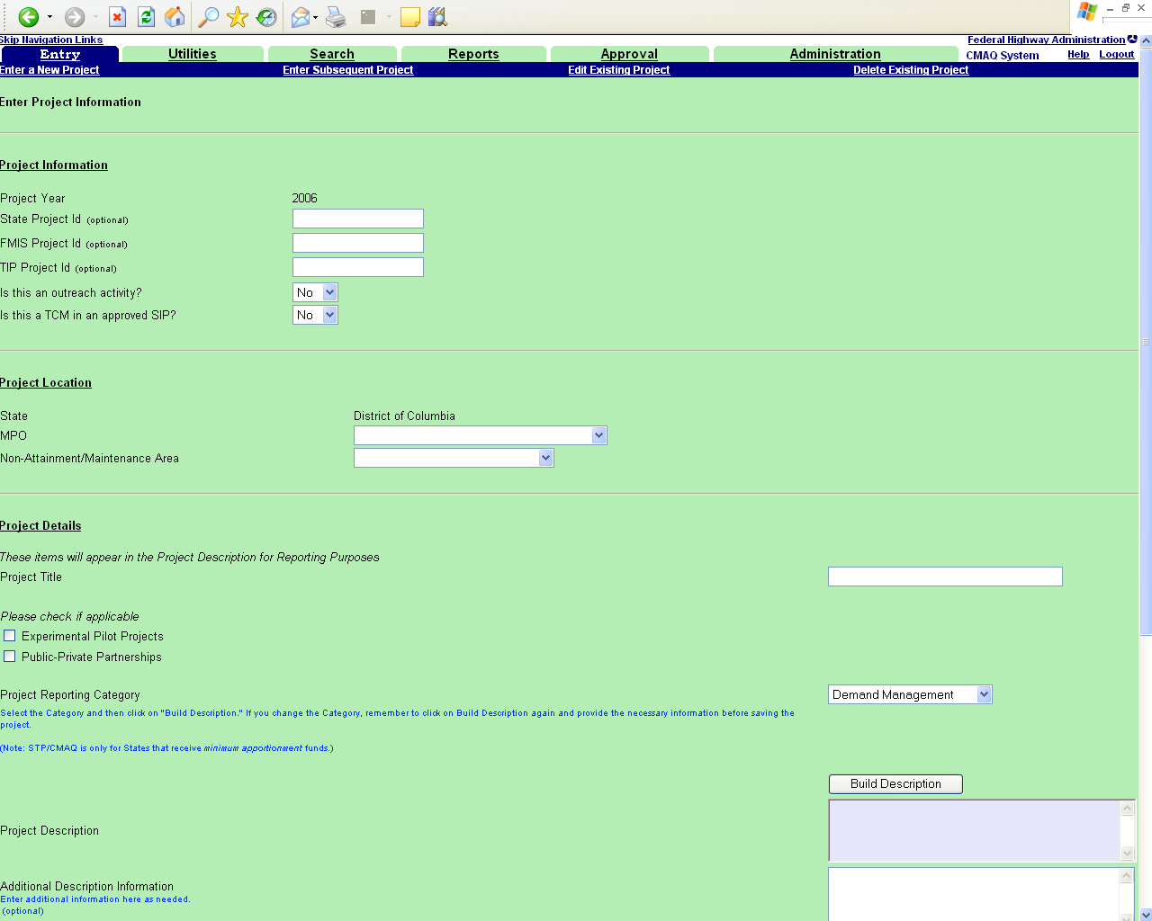 CMAQ Tracking system -- Basic Project entry process