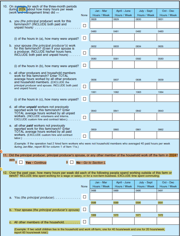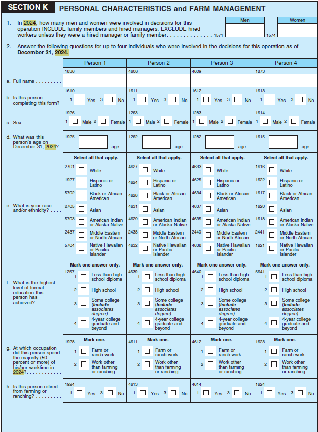 Section K (Personal Characteristics and Farm Management)