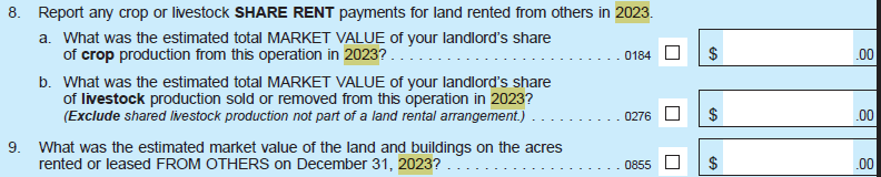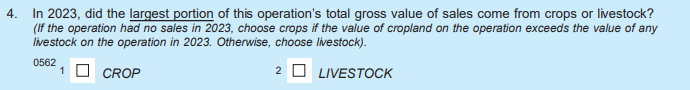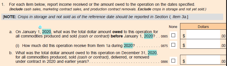 Add new question 2c(iv)a – “Of Item (iv), how much was received from supplemental disaster assistance, including Emergency Commodity Assistance Program (ECAP), Emergency Livestock Relief Program (ELRP), and Supplemental Disaster Relief Program (SDRP)?”