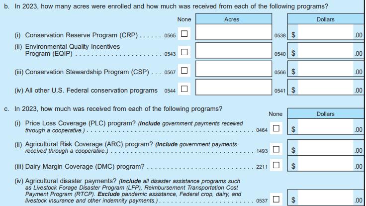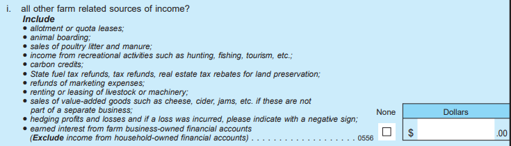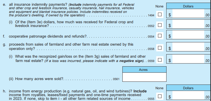 Section G (Government Payments & Other Farm Related Income)