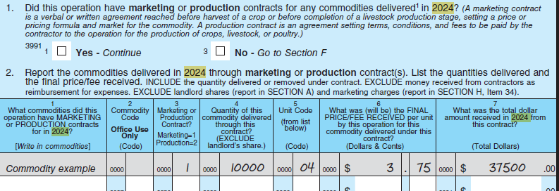 Section E (Marketing and Production Contracts)