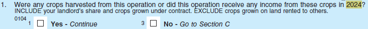 Section B (Acreage, Production, and Cash Sales)
