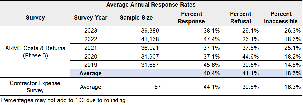 Non-response is taken into account in the ARMS 3 sample allocations by State. ARMS 3 sets a target for positive usable responses by State and ARMS Region; the sample size is adjusted based on a 5-year historical response rate to achieve the targeted usable rates.