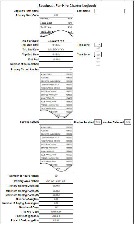 0648-0016 Screenshot - Fishing Report form (logbook) Charter Vessel Gulf of America