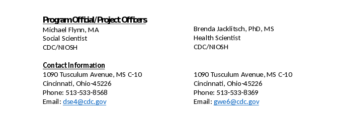 This data collection is being conducted using the Generic Information Collection OMB No. 0920-1154. A private contractor (Communidades Unidas), working with NIOSH researchers, will recruit focus group participants, conduct the focus groups, and provide information to NIOSH that summarizes major findings.