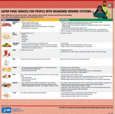 Safer/riskier food table for people with weakened immune systems (printable PDF) |