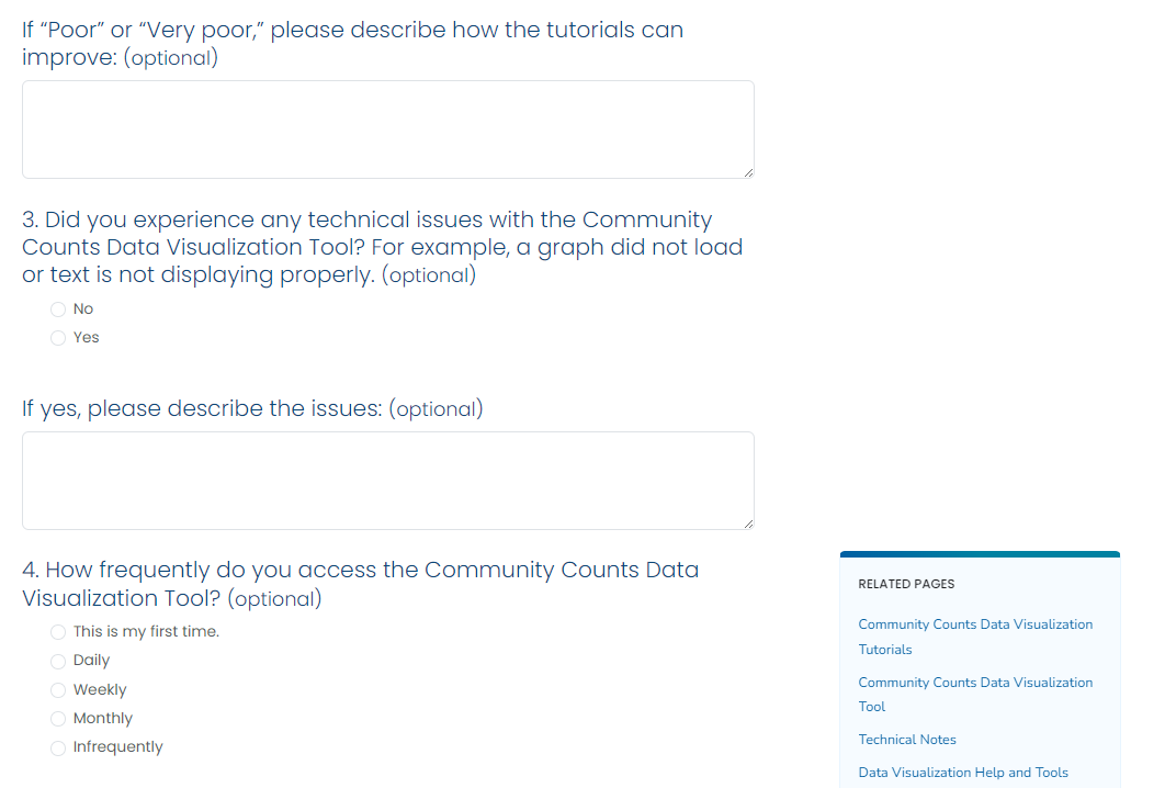 Screenshots of Feedback Survey for Community Counts Data Viz Tool