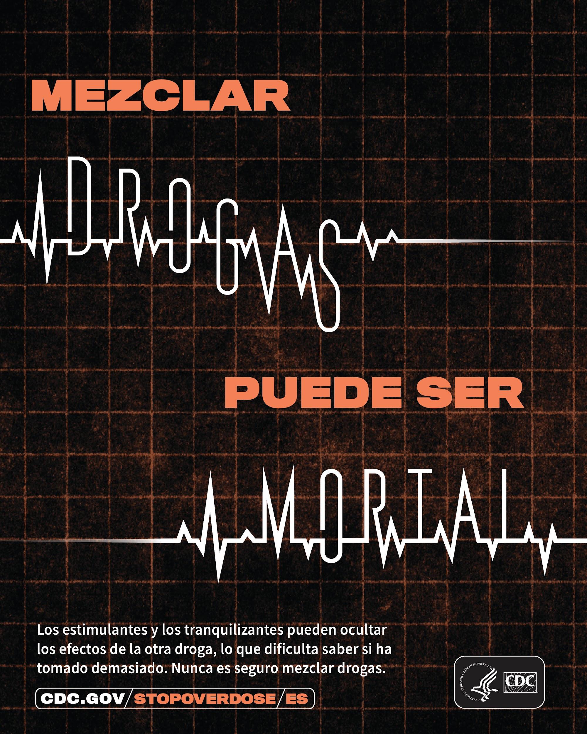 Announcer: No hay manera segura de mezclar las drogas. Conoce más en C D C punto gov diagonal stop overdose diagonal ES.