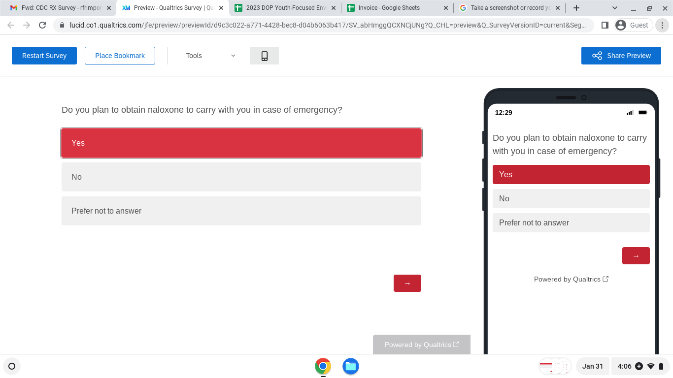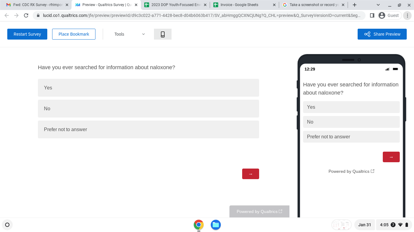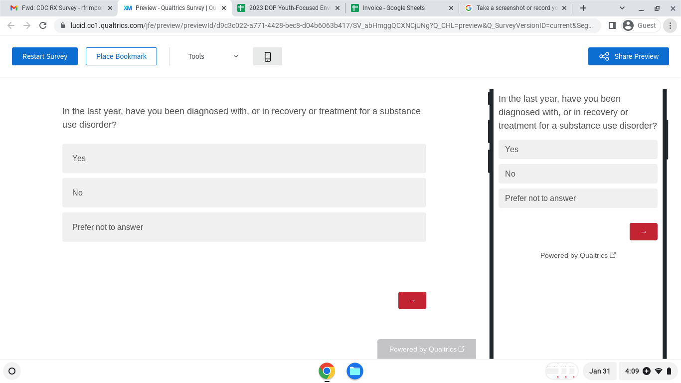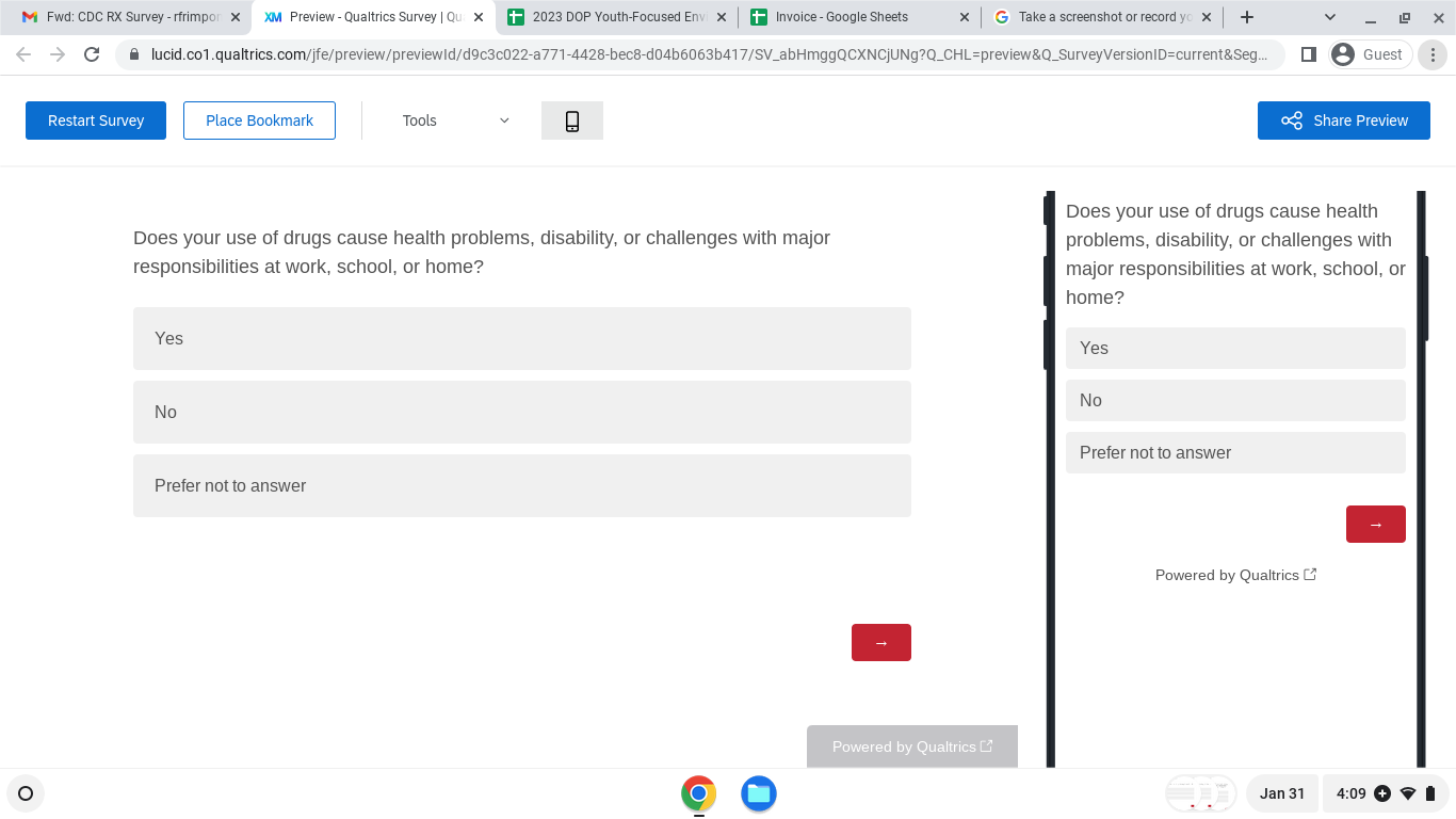 The Centers for Disease Control and Prevention (CDC) developed and launched the Stop Overdose campaigns, four education campaigns, to prevent and reduce drug overdoses. This is research in which you will respond to multiple choice and open-ended questions to give your opinions about Stop Overdose campaign messages and materials. Participation is voluntary and you may complete all or some of the survey. If you have questions about this research, you may contact the principal investigator, Everett L. Long, PhD., by email at elong@brunetgarcia.com or phone, (704)-657-5338.