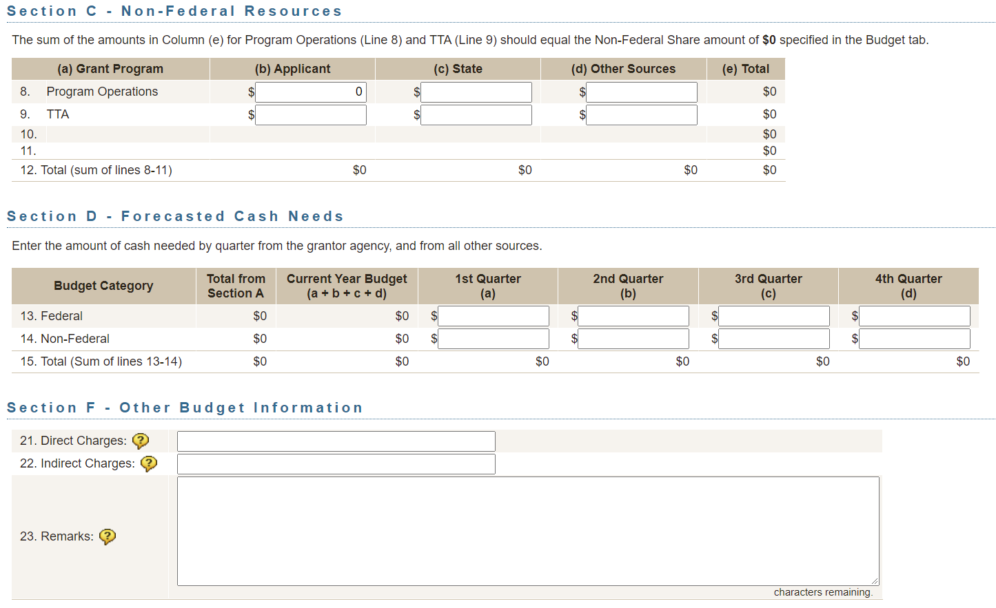 Make relevant changes where needed (e.g., Budget, Other Funding, SF-424, Program Schedule).