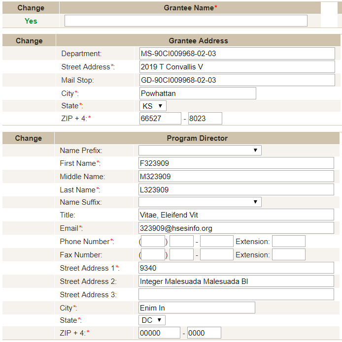 Use this amendment type for grantee name and other changes. Grantee changes can also be made on the Grantee Change tab within existing application types. |