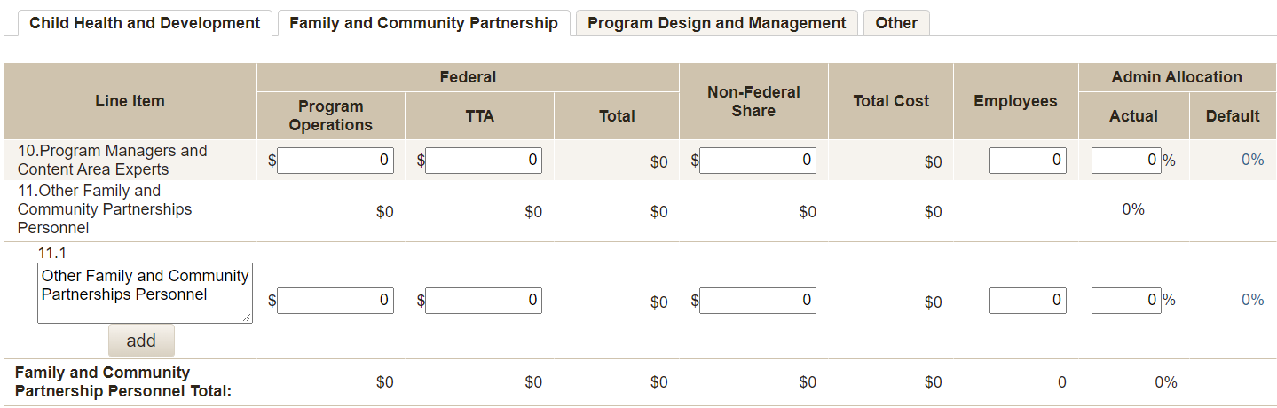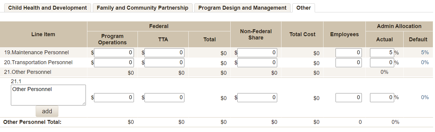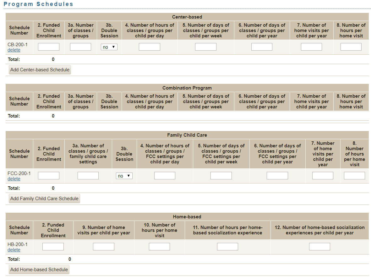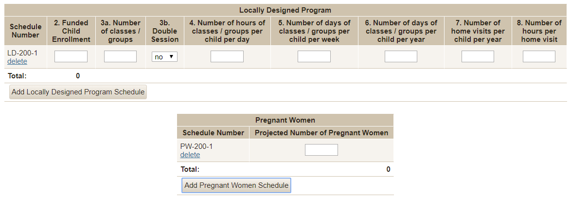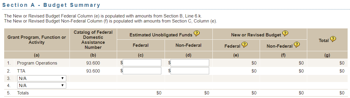 Separate projected budgets must be completed for both Head Start and Early Head Start program operations and Head Start and Early Head Start training and technical assistance by grant and by delegate.