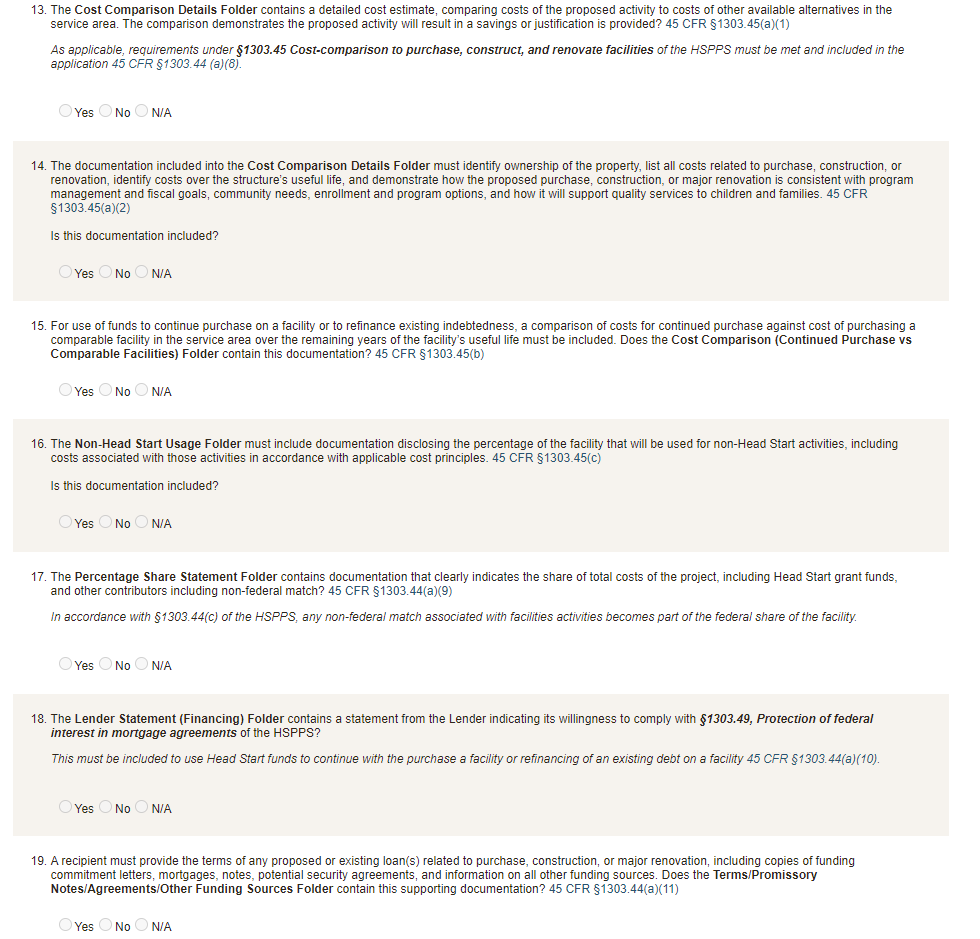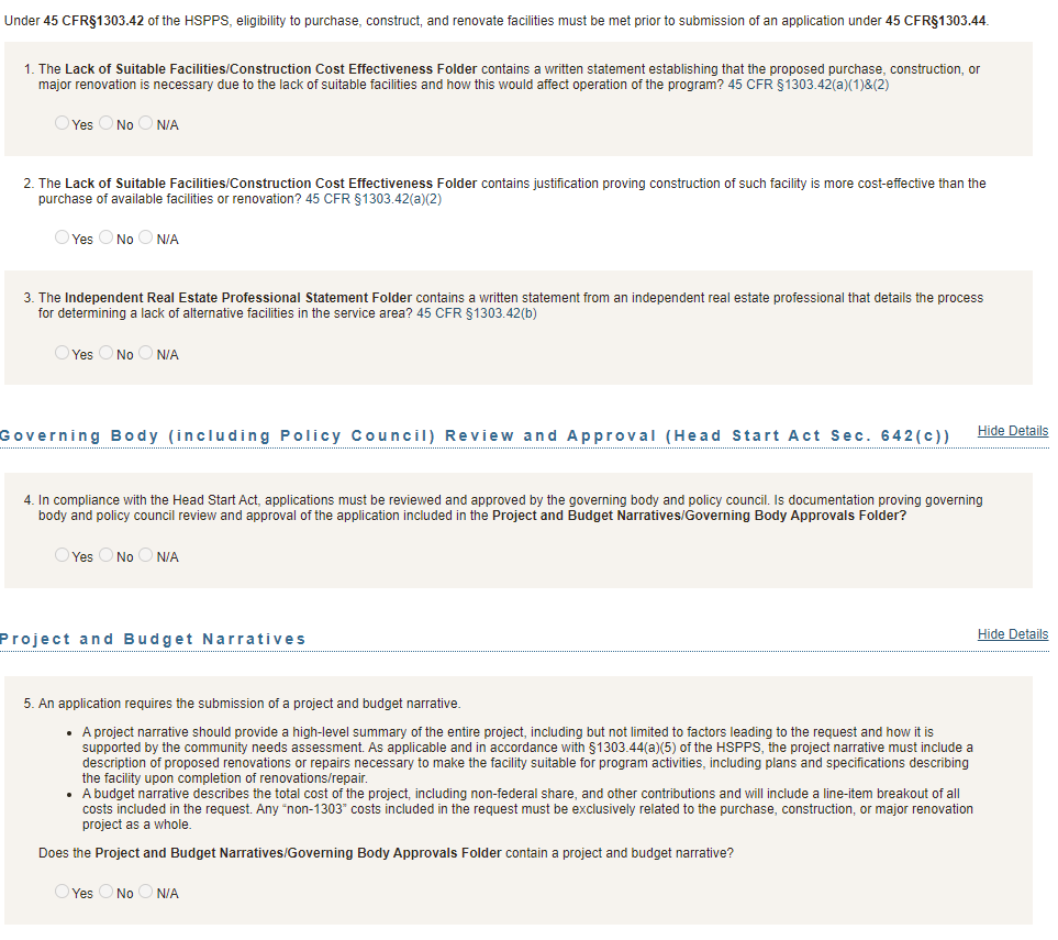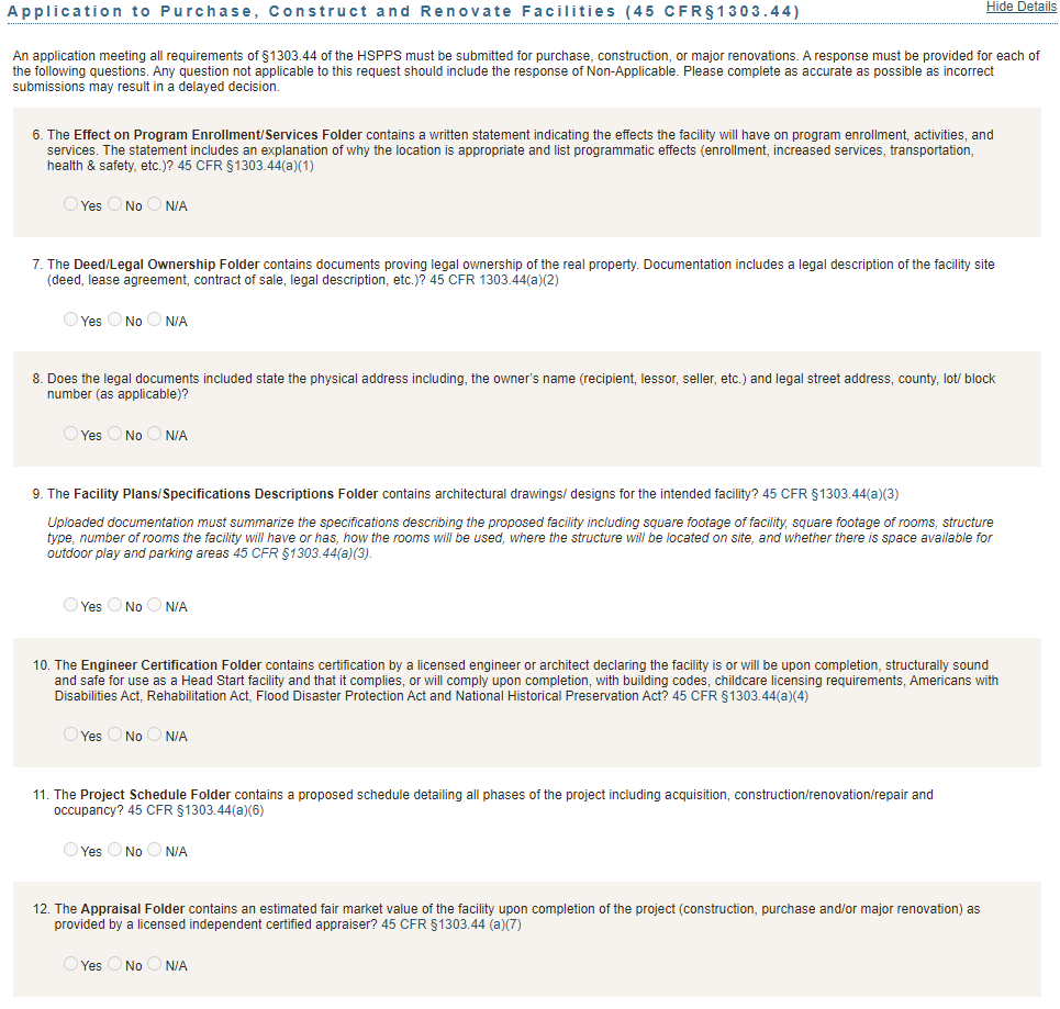 In the Baseline Application, recipients describe the program design, approach to service delivery, and supporting budget. This is an opportunity for the recipient to present their strategies for meeting certain requirements and to ensure the delivery of high-quality services, including a program design that is responsive to the needs of the children and families in the community. In the Continuation Application, recipients describe any changes and/or updates to their budget. The Office of Head Start analyzes each application to understand whether the recipient’s proposal is reasonable, allowable, and allocable.