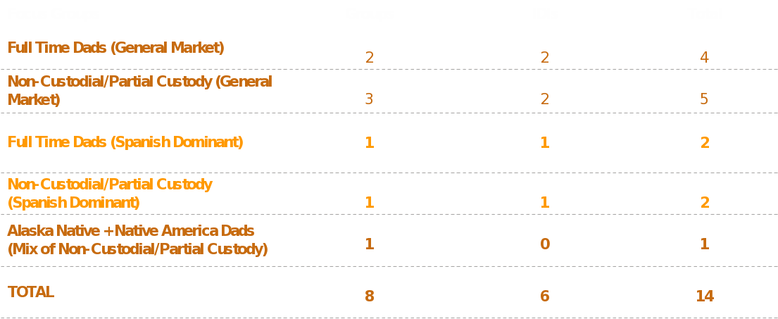 Minimum quota of 16-17 year olds: one full group of non-custodial/partial custody fathers should be ages 16-18 if possible; and one IDI should be a father age 16 or 17.