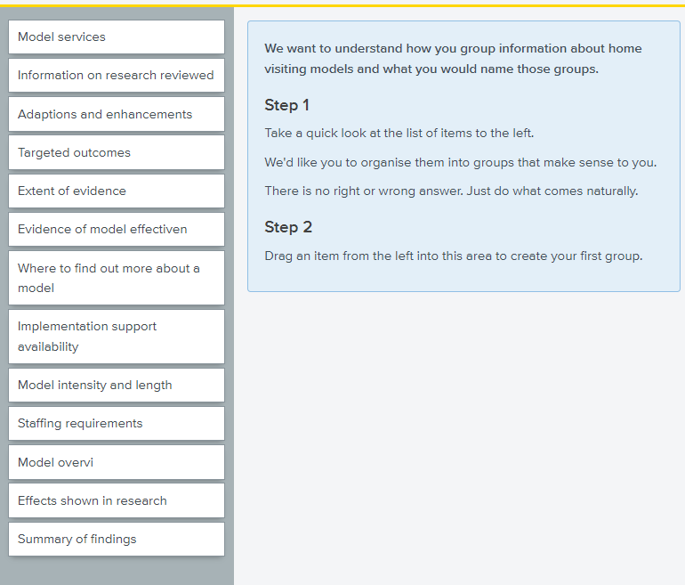 Home Visiting Evidence of Effectiveness – Website Information Architecture Testing instrument, instructions, and scripts