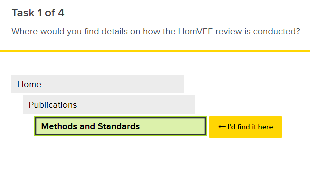 This document describes our plan for testing the Home Visiting Evidence of Effectiveness (HomVEE) website’s Information Architecture to discover issues impacting the usability of the site.
