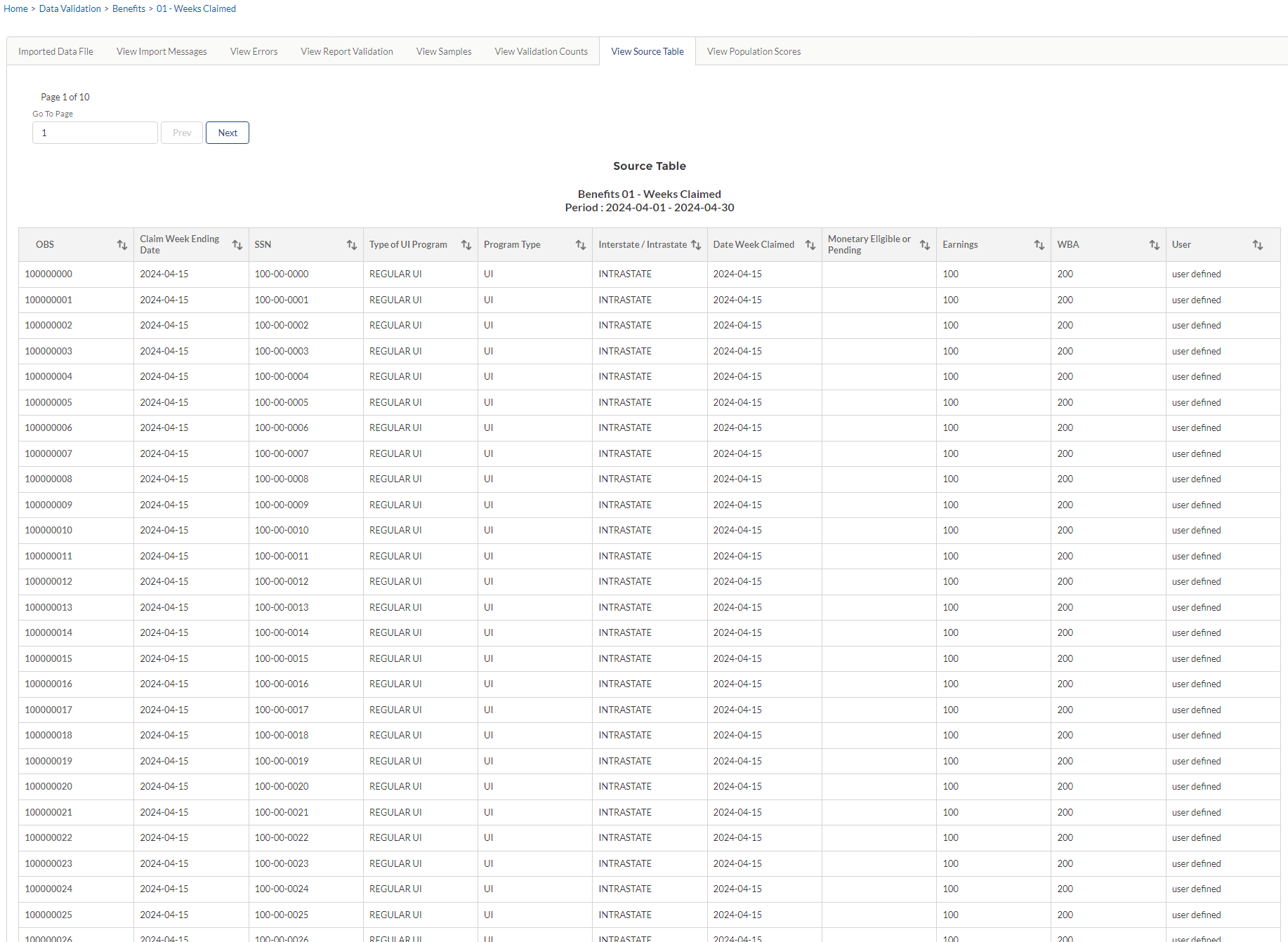 States are required to validate reported data every third year, except for data elements used to calculate Government Performance and Results Act (GPRA) measures, which must be validated annually. Items that do not pass validation must be revalidated the following year. The “validation year” coincides with the State Quality Service Plan (SQSP) performance year. It covers data of any reporting period during the twelve months beginning April 1 and ending March 31. Results must be submitted to the National Office by June 10, which allows sufficient time for data validation results to be included in the SQSP process. States that fail DV or do not submit their DV results by the established deadline must address these deficiencies through the SQSP. If states modernize their UI benefits data management system, partially, completely, or in any way that impacts reporting and therefore data validation, states must validate every benefits population the following year once the new system is deployed or goes live. This requirement includes populations with passing scores that were previously valid for three years and not yet due for validation. Similarly, if a state does not submit the underlying benchmark populations (Benefits Populations 5 and 8; Tax Populations 3 and 5) to complete Module 4 within the three year validation cycle, the scores will also not be considered valid until these are transmitted. If a state revises an ETA UI Required Report for the same time period it used for data validation, the data validation score will not be considered valid until the state resubmits the results using the revised report counts.
